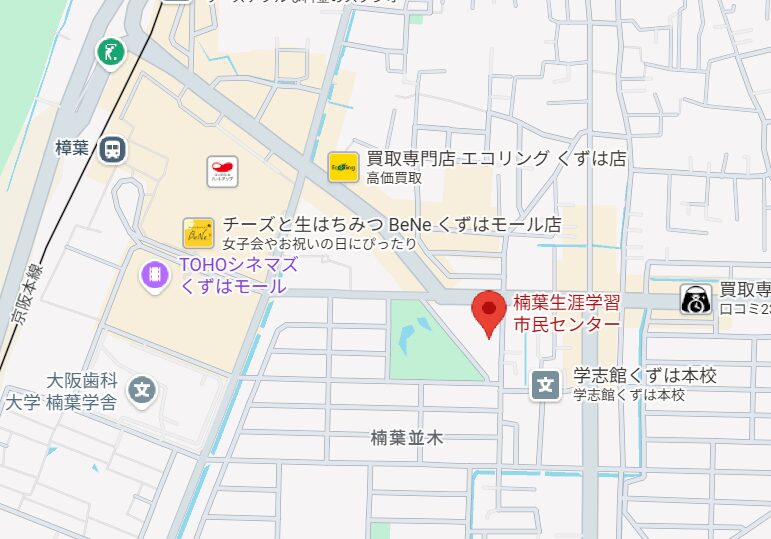 場所:枚方市楠葉並木2丁目29-5 楠葉生涯学習市民センター3階第5集会室