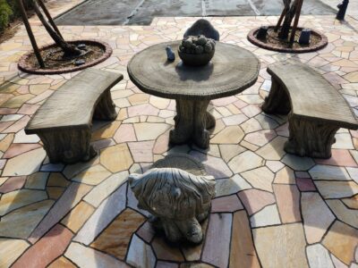 今度はたくさんベンチを置く!石のベンチをたくさん配置し、ブランコ型の椅子も配置していこうと考えている!座る場が増えると、墓参りの時間が長くなり故人との対話が増え、活気ある霊園になることだろう!どんどん風景が変わる毎日がとても楽しい。