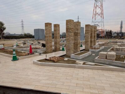 ハピネスパーク牧野霊園の第4期石張り工事が折り返しに入り、1万枚以上の石が貼られたことになる。水場の塗装が始まり、スタンドの工事も順調に進んでいる!完成すれば霊園を一望できるので、新しい取り組みは成功に収まりそうだ。