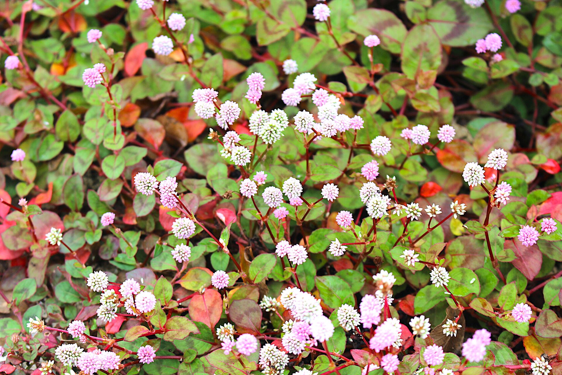 園内にヒメツルソバの花が綺麗に咲いております。